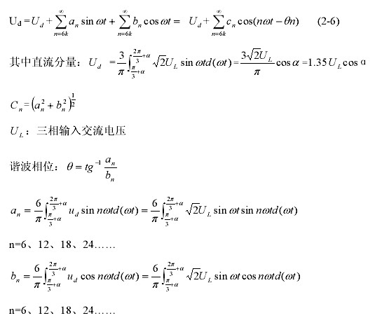 以三相橋式全控整流電路為例,直流電流連續時,何值,負載直流電壓的傅氏級數表達式為: