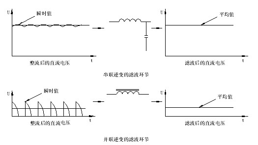 在橋式整流器直流輸出端串聯電抗器加并聯電容器的組合濾波,輸出直流電壓和電流平穩;一般電抗器采用無鐵芯的電抗器,有效降低電抗器發出的噪音。同時由于電容濾波的作用,也充分抑制逆變中頻的諧波分量反饋到外部電網。